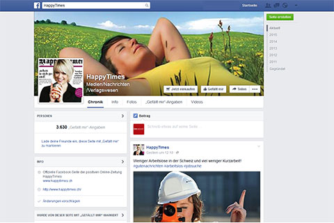 Die Facebook Seite von HappyTimes, der Online-Zeitung mit täglich nur guten Nachrichten.