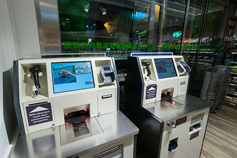 Anstehen war gestern: Selber scannen, bezahlen und davonlaufen. Die neuen "Verkäuferlis-Automaten" von Coop machens möglich.