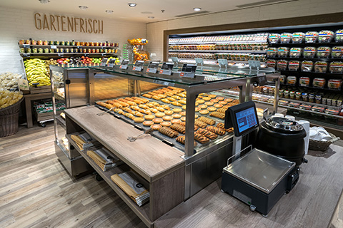 Lecker: Blick in die neue Coop to go Filiale im Bahnhof Stadelhofen Zürich.
