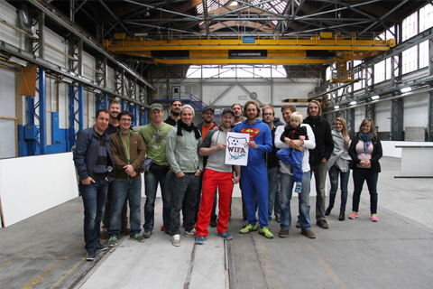 Das motivierte Bauteam in den altehrwürdigen Hallen der Lokifabrik Winterthur
