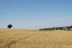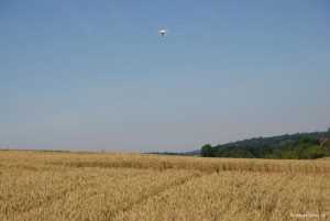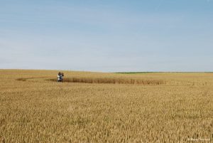 Auf jeden Fall aber ist der Kornkreis mit seinem beachtlichen Durchmesser eine stattliche Erscheinung. Idyllisch eingebettet in die saftigen Auen des Thurgaus beim hübschen Dörfchen Bommen, inmitten gülden wogenden Weizenfelder, die wenig vom Kornkreis entfernt bereits abgeerntet und von apokalyptisch anmutenden Monstermaschinen gierig gefressen und staubflirrend gedrescht werden. Vermutlich halten die Aliens diese gigantischen Mähdrescher für die wahren Herrscher dieser Erde. „John Deere heissen die Titanen auf dem Planeten Erde“, wird in den Alienschulen den gelangweilt einäugig blinzelnden Zyklopenkindern vermutlich gelehrt.