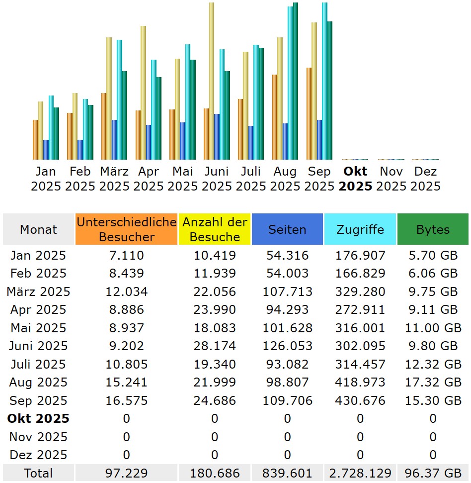 Gute Nachrichten sind gefragt, gerade in der heutigen Zeit. Die Schweizer Zeitung HappyTimes, die seit 2009 täglich nur gute Nachrichten bringt, konnte die Besucherzahlen auch im September 2025 steigern. So gab es bei den für die Medienbranche wichtigen „Unique Visitors“ den besten Wert des Jahres 2025! 16’575 eindeutige Besucher lasen ihre Lieblingszeitung HappyTimes im September. Im Gesamten zählte das HäppiBlettli 24’000 Besuche. Und das in einem einzigen Monat! Vielen Dank liebe Leser von HappyTimes! Diesen Erfolg verdankt HappyTimes nur Ihnen! Bitte unterstützen Sie uns doch mit der Buchung eines Gastartikels oder einer kleinen Spende, damit wir auch weiterhin nur gute Nachrichten bringen können. Im Monat Oktober haben wir sogar eine 50% Aktion für Gastartikel.