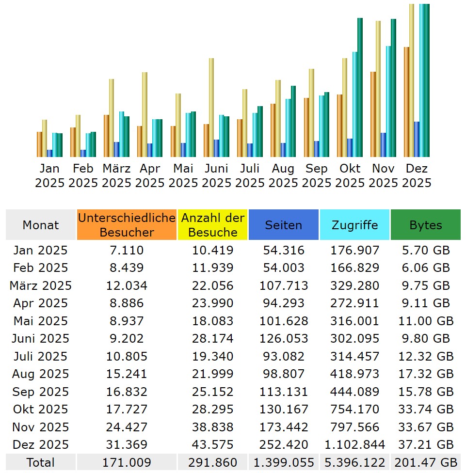 - 171’009 Unterschiedliche Besucher (Unique Visitors)