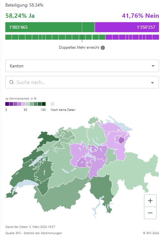 Abstimmungsresultat 13. AHV Rente vom 3.3.2024