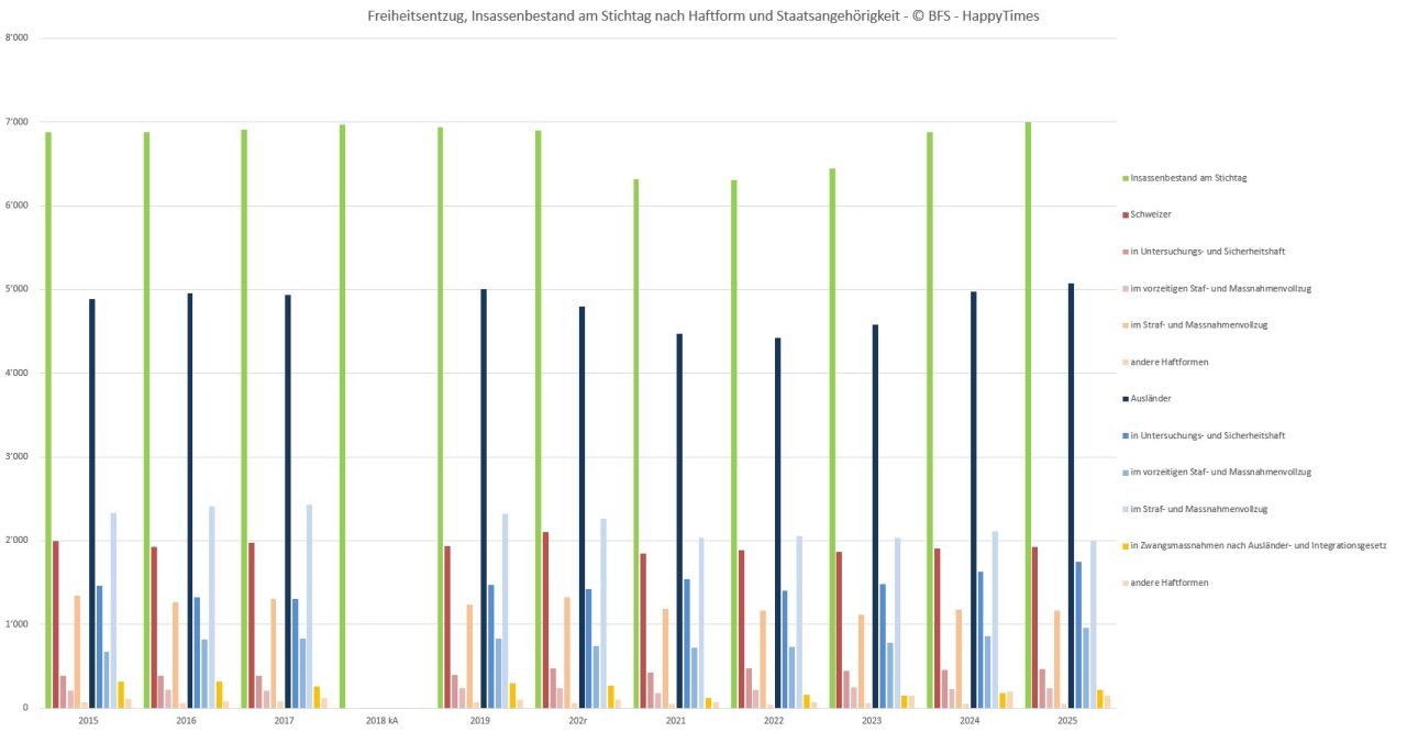 Gefängnis Insassen nach Nationalität und Haftformen 2015 – 2025