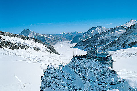 Atemberaubend: Wer baut denn hier oben ein Haus?! Die „Sphinx“ der Jungfrau-Bahnen oberhalb des Aletschgletschers, ist auf 3’571 Metern“Top of Europe“