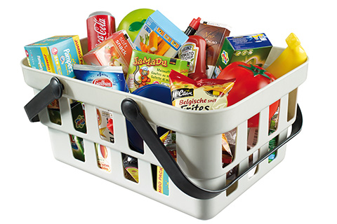 Der Mini-Einkaufskorb des Kinder-Verkaufsladens ist mit 20 originalgetreuen Coop Eigenprodukten und Markenartikel in Mini-Format gefüllt und enthält so hübsche Produkte wie Cola-Büchse, Fischstäbchen-Packung, Backofen-Pommes und Heinz-Ketchup. Soll also nach den Vorstellungen von Coop den Kindern so eine Ernährung beigebracht werden? Aber zum Glück hat es auch noch eine (Plastik)Tomate, eine Banane und ein Apfel mit im Korb. Es ist ja auch allen ernährungsbewussten Eltern freigestellt, selber für den Verkaufsladen ihrer Kinder Mini- bio oder vegane Lebensmittel zu basteln.