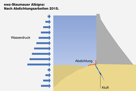 Grafik der Reparaturarbeiten an der Albigna-Staumauer im Querschnitt