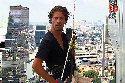 Toller Hecht am Haken: Vujo seilt sich todesmutig aus dem 34. Stockwerk eines Hochhauses in Bangkok ab